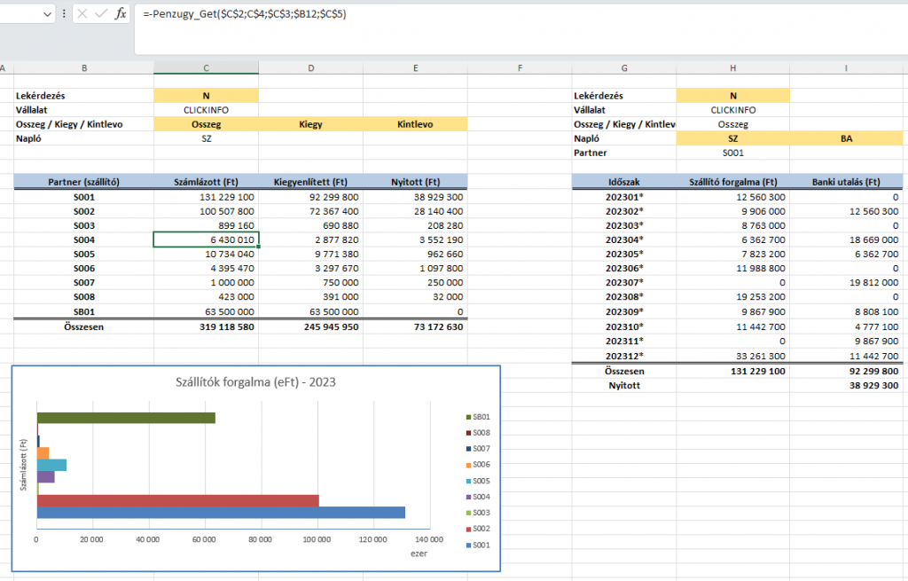 Az egységesített pénzügyi kimutatások és Excel függvények:
