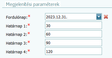 A Nyitott lista paraméterein túl a fordulónapra és a határnapokra is van beajánlott paraméter, ami igény szerint megváltoztatható. A dátum mezők értékét kiválaszthatjuk a legördülő listából, vagy be is írhatjuk őket.